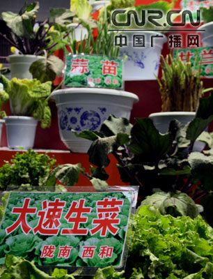 中廣網(wǎng)蘭州1月21日消息(記者 張磊) 連日的降雪讓整個(gè)蘭州籠罩在灰白的冷色調(diào)里,但是隨著第二屆隴南市冬季露地蔬菜博覽會(huì)的開幕,那鮮嫩的綠色頓時(shí)讓蘭州市民眼前一亮。