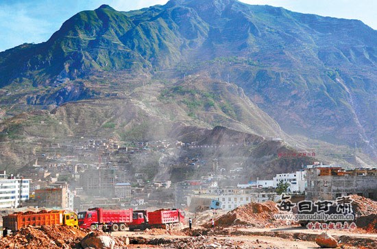 中廣網(wǎng)蘭州6月17日消息 甘肅省水利水電工程局工程隊在舟曲縣三眼峪排洪渠現(xiàn)場施工。目前,舟曲縣城泥石流綜合治理工程進(jìn)展順利。記者 洪文泉 攝