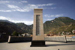 “月圓村村莊沒了,這里以后就是追思園!”月圓村村委會主任劉小林告訴記者,在月圓村原址附近,記者看到泥石流肆虐后沉積的淤泥已經(jīng)被徹底清除,三眼峪峪口兩邊被毀壞的房子大部分都被拆除,這里成了災(zāi)后重建的工地,新的排洪溝和護坡工程正在加緊施工當(dāng)中。在曾經(jīng)的月圓村原址上,舟曲縣政府新修建的“追思園”已經(jīng)完工,將在8月8日揭牌。紀(jì)念碑高8.8米,寓意泥石流災(zāi)害發(fā)生時間為8月8日,長達(dá)22.85米的紀(jì)念墻呈圓弧狀,半繞紀(jì)念碑,高2.1米,碑上鐫刻著在那次泥石流災(zāi)害中的遇難者和失蹤者的姓名。值得一提的是,記者發(fā)現(xiàn)太陽下山的時候,縣城許多老老少少、男男女女都會來到這里,追思亡靈,每個路過這里的人也都會不由自主地停下腳步,默默地站立著,緬懷親人。