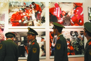 開幕儀式結(jié)束后,陸浩、劉偉平等領(lǐng)導(dǎo)參觀了展覽。一幅幅觸目驚心的畫面、一張張堅強(qiáng)不屈的面孔、一份份感人至深的情誼……雖然時隔8個多月,但曾發(fā)生在舟曲的一幕幕場景依舊震撼人心。從“災(zāi)害突如其來”到“堅強(qiáng)領(lǐng)導(dǎo),緊急馳援”再到“生命大救援”、“民族英雄譜寫英雄贊歌”、“天災(zāi)無情,人間大愛”,最后再到“建設(shè)一個更加美好的舟曲”,舟曲搶險救援的整個歷程,在此得以完整體現(xiàn)。