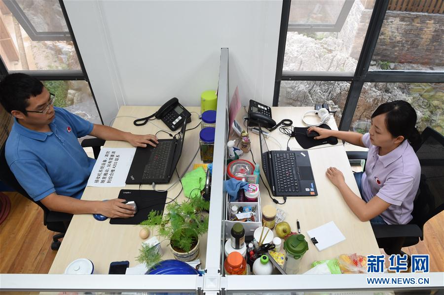 孫純(右)與石向瑋在辦公室內(nèi)工作。新華社記者歐東衢 攝 在項(xiàng)目組,孫純負(fù)責(zé)被稱為FAST“大腦”的總控設(shè)備運(yùn)行與控制。和石向瑋完婚后,兩人在這個(gè)“聆聽宇宙最近的地方”,以“探尋宇宙奧秘”代替了新婚蜜月旅行。 -