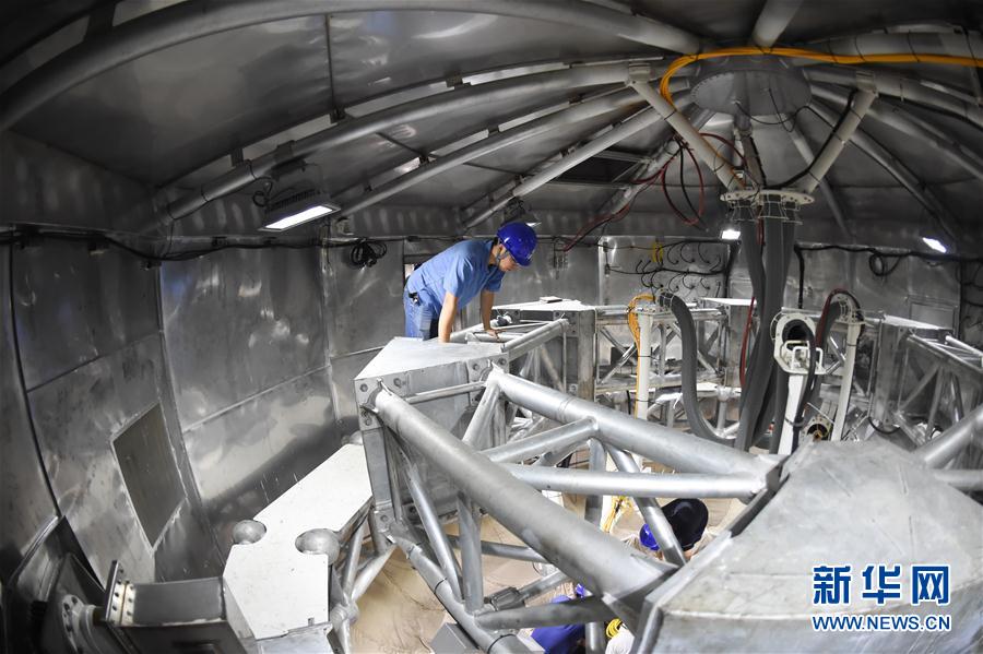 8月10日,石向瑋在FAST饋源艙內(nèi)作業(yè)。新華社記者歐東衢 攝 -