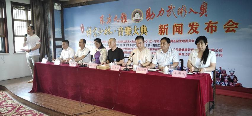 圖為東方九雅助力武入奧走進(jìn)禪宗少林音樂大典的新聞發(fā)布會(huì)現(xiàn)場