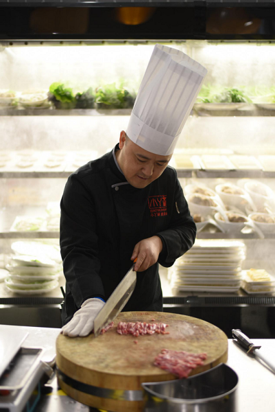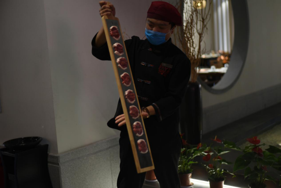 3、新鮮現(xiàn)切,所有鮮肉保證冷鏈運(yùn)輸,最大極限保證肉質(zhì)的新鮮。明檔現(xiàn)切,新鮮看得見。置于盤上,任性翻轉(zhuǎn)不脫落。