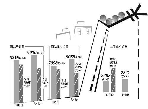 商住房均價(jià)6696元/平方米,較9月份漲了205元 二者銷量均較上月少賣1000多套