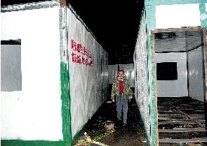 集裝箱房可放5張雙人床,床位費(fèi)每鋪每天6角錢