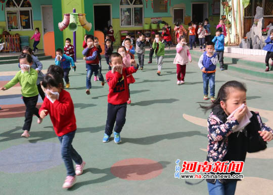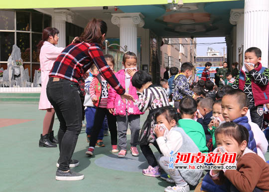 洛陽(yáng)西工600名幼兒現(xiàn)場(chǎng)體驗(yàn)火場(chǎng)逃生 張左宏/攝