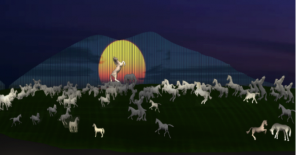 “龍馬歸來”是這屆音樂燈光節(jié)的主打造型藝術(shù)。白天,該景點通過一百匹神形各異的龍馬來傳達(dá)了一場視覺秀,它們時而四蹄翻騰,時而長鬃飛揚,時而仰天長嘯,時而馳騁奔騰,忽遠(yuǎn)忽近,有疏有密,錯落有致,場面恢宏磅礴,聲勢浩大;夜晚,通過燈光與音樂的組合演繹一場跌宕起伏的神話,故事發(fā)生在一個衰落不再繁榮的社會,一匹年輕龍馬身負(fù)河圖、從天而降,它堅韌不拔、開拓八荒的精神點亮四方,引來一群龍馬齊心協(xié)力,最終實現(xiàn)偉大復(fù)興的夢想!