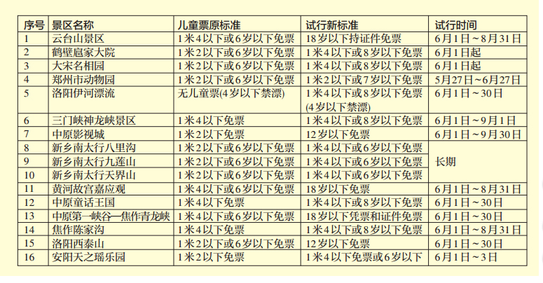 5月27日,廣納社會建議和意見,我省16家景區(qū)齊集鄭州市動物園,一致決定將于6月1日開始,試行兒童票收費新標準,按年齡賣兒童票。