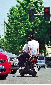 伴隨著“突突突”的摩托聲,騎車男孩稍稍看了一眼穿梭的車流,兩腳蹬地,右手一使勁,摩托車箭一般飛奔出去,這時,由東向西的信號燈顯示為紅燈。