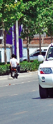 沿東風路一直向西,11點12分到信息學(xué)院路時,摩托車依舊沒有理會紅燈和穿梭的車流,從幾輛汽車中見縫插針、左閃右躲,向西揚長而去。