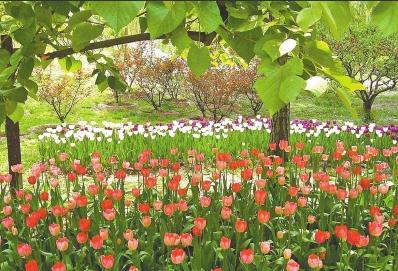 洛陽的郁金香花園是典型的“雙花斗艷”之地,四月里牡丹的國色天香令人流連忘返,四月底五月初盛開的郁金香花更顯優(yōu)雅清新,牡丹與郁金香交織在一起,演繹著繁華奔放與清新優(yōu)雅兩種不同的風格。郁金香花園里的建筑多為荷蘭風格,起伏的小型草原,精致的白色雕像群,高大的荷蘭風車,仿佛置身于荷蘭的某個風情小鎮(zhèn);遠處熱鬧的游樂場,郁郁蔥蔥的綠樹,潺潺的流水,體現(xiàn)出中國風格的園林之美。安靜與繁華在這里并存,十分愜意。據(jù)介紹,洛陽郁金香花園的花卉種植面積近150畝,是人們賞花游玩、情侶傳達愛情信息、感悟異國風情的一個好去處。