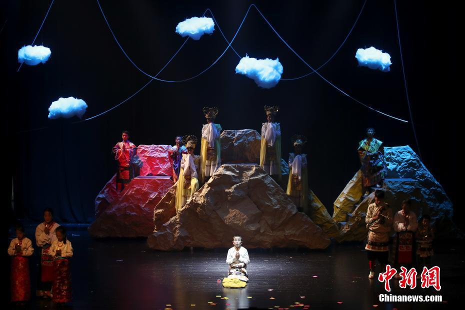 藏式音樂劇《騎風(fēng)馬的旦措》排練時(shí)間雖短,但藏式戲劇風(fēng)格在表演中取得了不錯(cuò)的演出效果。中新社記者 盛佳鵬 攝 -