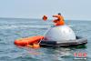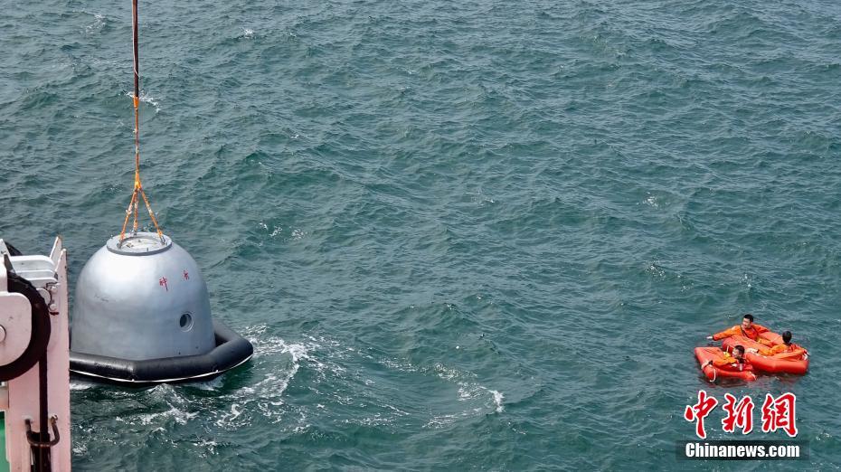 16名中國航天員和2名歐洲航天員,8月21日在山東省煙臺市附近海域圓滿完成了海上救生訓(xùn)練任務(wù)。圖為布放在后甲板上的神舟飛船模擬返回艙。海上救生訓(xùn)練設(shè)置理論培訓(xùn)、單項操作訓(xùn)練和綜合訓(xùn)練三個部分,這是中國航天員首次在真實海域開展救生訓(xùn)練。 中新社記者 張素 攝 -