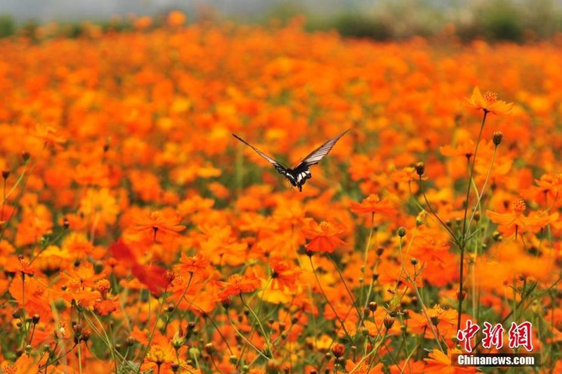 9月22日,在江西省上饒市鉛山縣永平鎮(zhèn)打石塢秀美新村,秋色迷人如童話般美麗。今年以來,該鎮(zhèn)籌集近千萬元資金,按照“縱情山水騎行處,養(yǎng)心參禪桃花源”的理念,打造四季花海之地。目前,首批栽種的小皺菊已盛開,游客絡(luò)繹不絕。丁銘華 攝 -