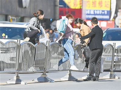 對(duì)此,交警部門加大對(duì)該路段的非機(jī)動(dòng)車和行人的管理力度,著重治理百腦匯門口行人翻越護(hù)欄的違法行為。昨日上午,市交警五大隊(duì)在東風(fēng)路與文博西路開(kāi)展行人翻越護(hù)欄交通違法集中整治行動(dòng)。
