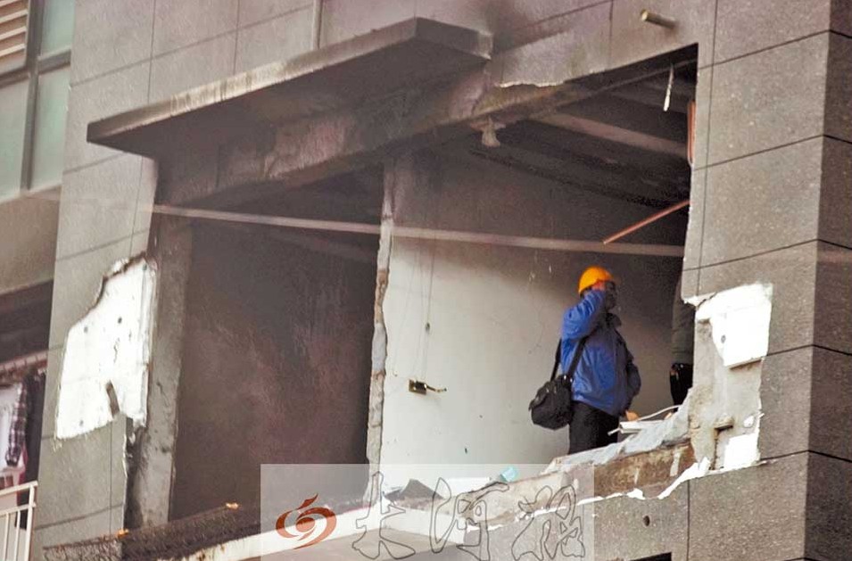 事發(fā)居民樓對(duì)面50米外的快捷酒店,窗戶(hù)大部分破損。