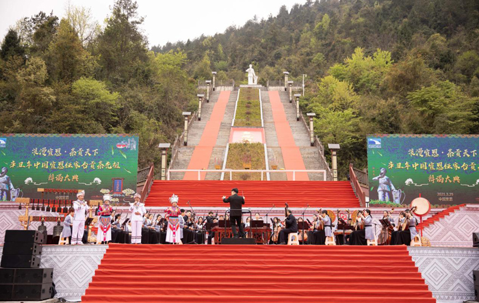 欣賞古風雅樂,品鑒貢茶神韻。本屆大典以湖北省編鐘國樂團的傾情演奏開場,《春到伍家臺》奏響了巴楚樂音的融合魅力與春的歡快樂章,也向世界發(fā)出了來自宣恩的邀請!爸敌脸笾愒沦,祭壇高筑;聚貢茶之故鄉(xiāng)兮,祭吾先祖。”拜謁儀式莊嚴隆重,展示了宣恩貢茶文化、土家風俗。歌舞《浪漫宣恩》、茶服走秀《中國茶》、原生態(tài)演唱加民樂合奏《唱支山歌給黨聽》等節(jié)目精彩紛呈,融合土家民族歌舞、非遺特色展演等元素,同時向中國共產(chǎn)黨百年華誕獻禮。