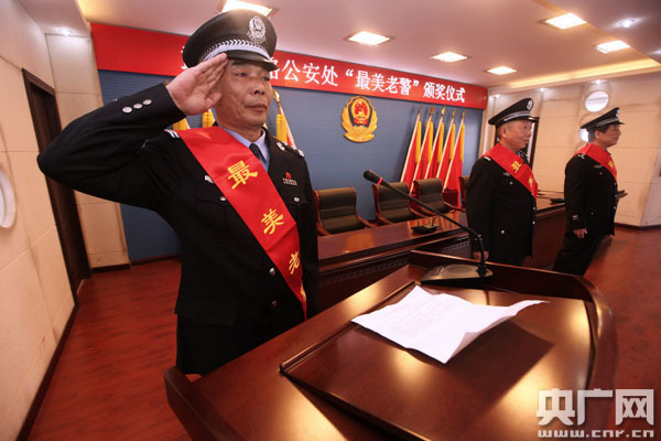央廣網武漢3月30日消息(記者張卓 通訊員馮暢 胡金力)他們中有火眼金睛的追逃標兵,僅去年一年就抓獲網上在逃人員104名;他們中也有默默守護偏僻小站的“老黃牛”,一“站”就是逾30載。3月29日,武漢鐵路公安處經過前期微信公眾投票,結合工作績效、公安處評委會評議,評選出了11名該公安處“2017年春運最美老警”,并舉行了頒獎儀式,該公安處領導為他們頒獎,該處近百名民警代表現(xiàn)場觀摩。這樣的一群身影令人肅然起敬,兩鬢發(fā)白的他們堅稱“這顆心從不后悔,將戰(zhàn)至最后一秒……”