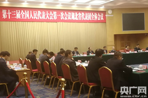 圖為:第十三屆全國人民代表大會(huì)第一次會(huì)議湖北省代表團(tuán)開放日現(xiàn)場(chǎng)