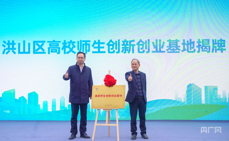 “洪山區(qū)高校師生創(chuàng)新創(chuàng)業(yè)基地”揭牌(央廣網(wǎng)記者鄧子依 攝)