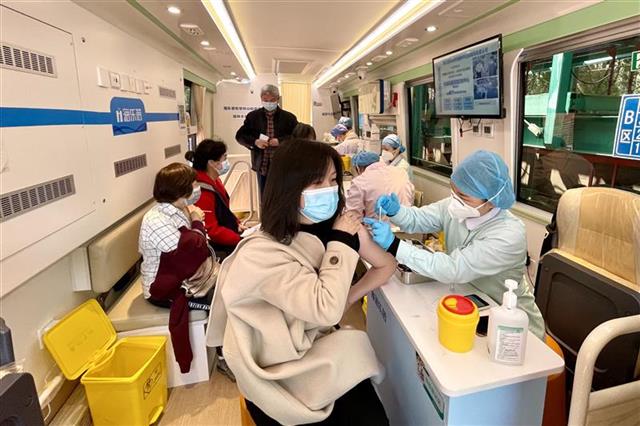 正在接種新冠疫苗的市民。記者王迪 攝