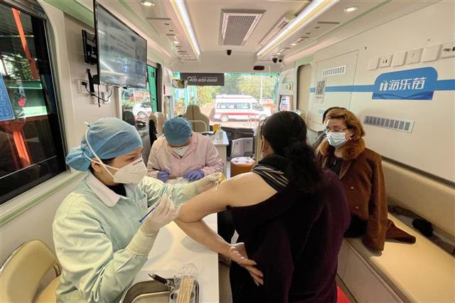 3月25日,一輛疫苗接種大巴開(kāi)到了武漢群星城,武漢市武昌區(qū)徐家棚街道在此設(shè)置新冠疫苗移動(dòng)接種點(diǎn),將新冠疫苗“送到家門(mén)口”。為方便轄區(qū)內(nèi)的寫(xiě)字樓、商業(yè)體、以及周?chē)木用窠臃N新冠疫苗,此次徐家棚街道向上級(jí)申請(qǐng)了一輛移動(dòng)接種車(chē),連續(xù)兩日在群星城為周邊單位從業(yè)人員和居民免費(fèi)提供疫苗接種服務(wù)。(湖北日?qǐng)?bào)全媒記者 李溪 通訊員 王迪 攝)