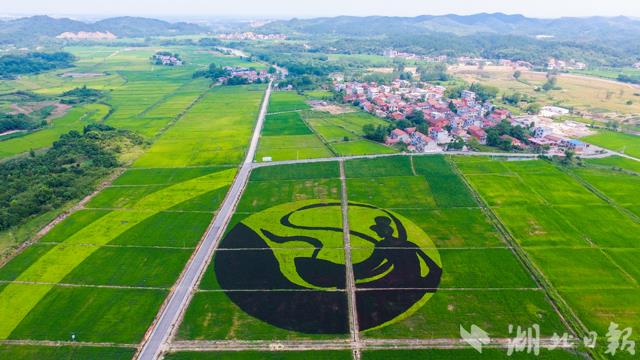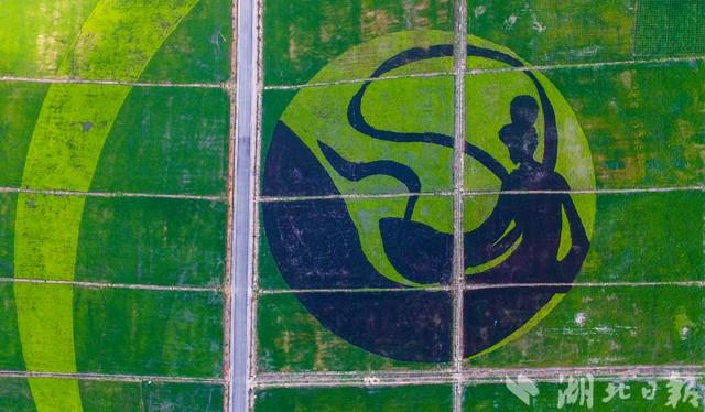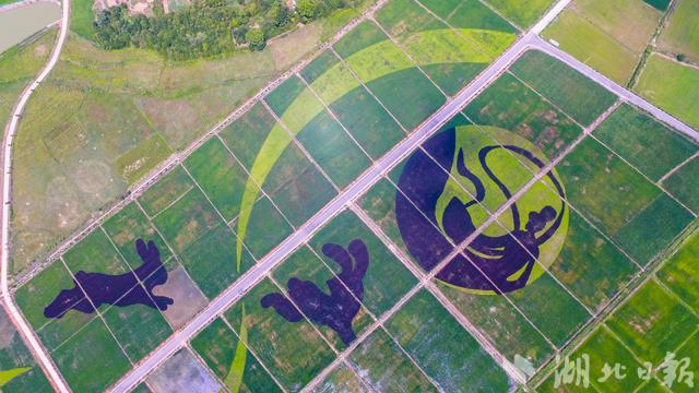 8月9日,一個直徑約200米的“嫦娥”圖案出現(xiàn)在咸寧市咸安區(qū)高橋鎮(zhèn)的稻田里。 咸安區(qū)是嫦娥文化之鄉(xiāng),湖北文化旅游投資集團有限公司在當(dāng)?shù)亟ㄔO(shè)田園綜合體項目,打造白水畈美麗村灣。這個占地400多畝的七彩稻田景點,栽種彩色水稻、巨型稻等特殊品種并拼成圖案,是首個完工的項目。