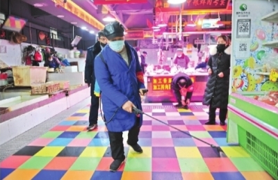 22日,東西湖區(qū)愛(ài)衛(wèi)辦聯(lián)合吳家山街對(duì)北冰洋城市廣場(chǎng)周邊市場(chǎng)、老舊小區(qū)進(jìn)行集中消殺,消耗二氧化氯消毒液、次氯酸鈉消毒液、84次消毒液共計(jì)6萬(wàn)毫升,消殺面積達(dá)3萬(wàn)平方米。地毯式環(huán)境消殺與整治,有效改善了街面環(huán)境衛(wèi)生狀況。長(zhǎng)江日?qǐng)?bào)記者在現(xiàn)場(chǎng)看到,廣大商戶(hù)正常提供服務(wù),市民井然有序地采購(gòu)年貨。商鋪老板王文濤告訴記者,衛(wèi)生健康部門(mén)組織的徹底消殺,讓他和其他市民都感覺(jué)很放心!案鶕(jù)愛(ài)衛(wèi)辦發(fā)放的小冊(cè)子,我還要做到勤洗手、戴口罩,做好全家的健康明白人”。62歲居民劉志敏說(shuō):“謝謝大家對(duì)環(huán)境進(jìn)行消殺,我也學(xué)到了很多健康常識(shí)!