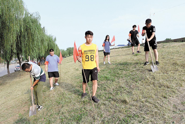 7月14日,黃梅縣小池鎮(zhèn)新河橋社區(qū)“00后”大學(xué)生組成青年突擊隊(duì),在黃廣大堤小池段巡堤查險(xiǎn)。他們是武漢、九江、杭州等地高校的大學(xué)生,因疫情影響滯留在家上網(wǎng)課。長江發(fā)生嚴(yán)重汛情后,十幾名“00后”大學(xué)生主動(dòng)向社區(qū)提出申請參加抗洪。