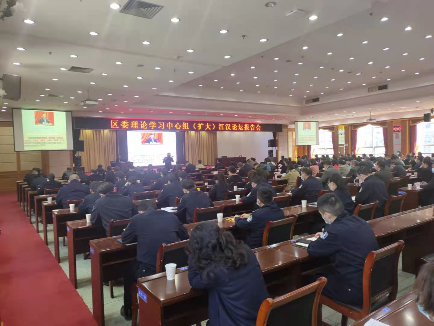 央廣網(wǎng)武漢3月25日消息(記者張迪 通訊員朱素芳 鄧文錦)3月25日下午,武漢市江漢區(qū)委理論學(xué)習(xí)中心組(擴(kuò)大)舉辦“江漢論壇”報告會。會上,武漢市委黨校教授翟一博作黨史學(xué)習(xí)教育輔導(dǎo)報告,江漢區(qū)委、區(qū)人大常委會、區(qū)政府、區(qū)政協(xié)領(lǐng)導(dǎo)班子成員及各街道各部門各單位黨政主要負(fù)責(zé)人參加學(xué)習(xí)。