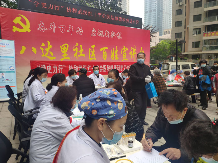 央廣網武漢4月8日消息(李磊 朱素芳 姚祖東)4月8日上午,協(xié)和武漢紅十字會醫(yī)院組織黨員醫(yī)生志愿服務隊走進江漢區(qū)常青街八達里社區(qū),開展“學史力行”首場健康科普義診進社區(qū)活動。協(xié)和武漢紅十字會醫(yī)院13名專家現場為社區(qū)居民一對一進行醫(yī)療康復指導,給社區(qū)居民帶來了實實在在的關懷和幫助。