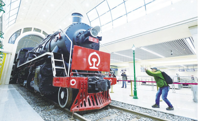 進(jìn)入到地鐵6號線的大智路站點,首先映入眼簾的就是一個老式蒸汽火車頭,“這是目前為止進(jìn)入到地鐵站點中最大最重的老物件。”來自北京城建院的設(shè)計師吳新宇介紹。