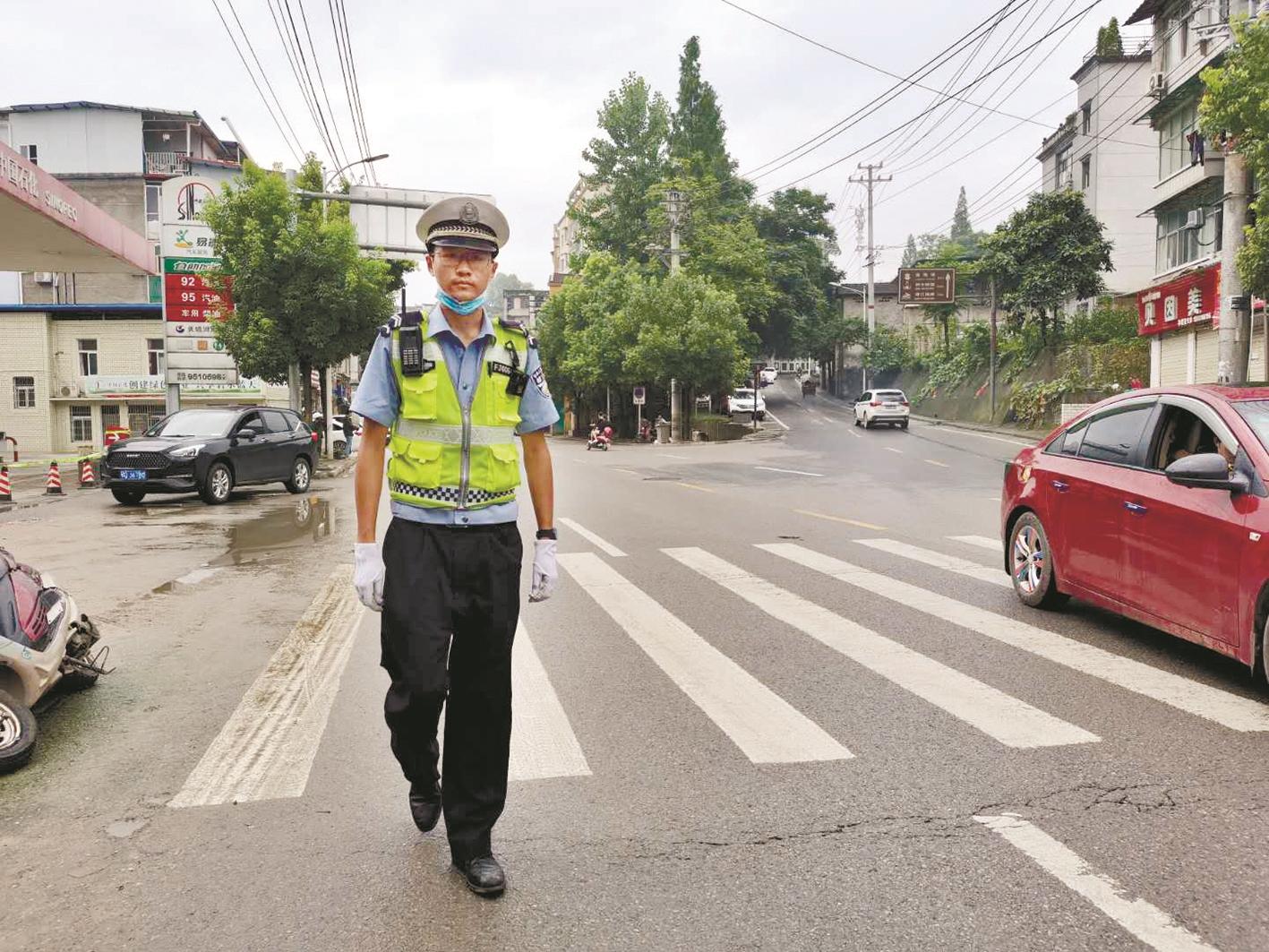 “他日常工作就是街面執(zhí)勤巡邏,小伙很敬業(yè)!闭勂鹂岛耄峭そ痪嘘(duì)中隊(duì)長(zhǎng)岳艷對(duì)他平時(shí)的工作非?隙。1999年出生的康弘很靦腆,參加工作有兩年了,葉挺路是他日常巡邏的區(qū)域!扒皫状伟l(fā)大水,我看見(jiàn)他經(jīng)常都是光著腳在附近巡邏,維持秩序!睙嵝氖忻裥芘肯蛴浾哒f(shuō)道。