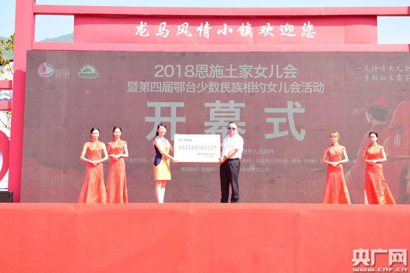 湖北省文聯(lián)黨組成員、副主席肖偉池現場授予恩施市“湖北省土家女兒會文化之鄉(xiāng)”的稱號。