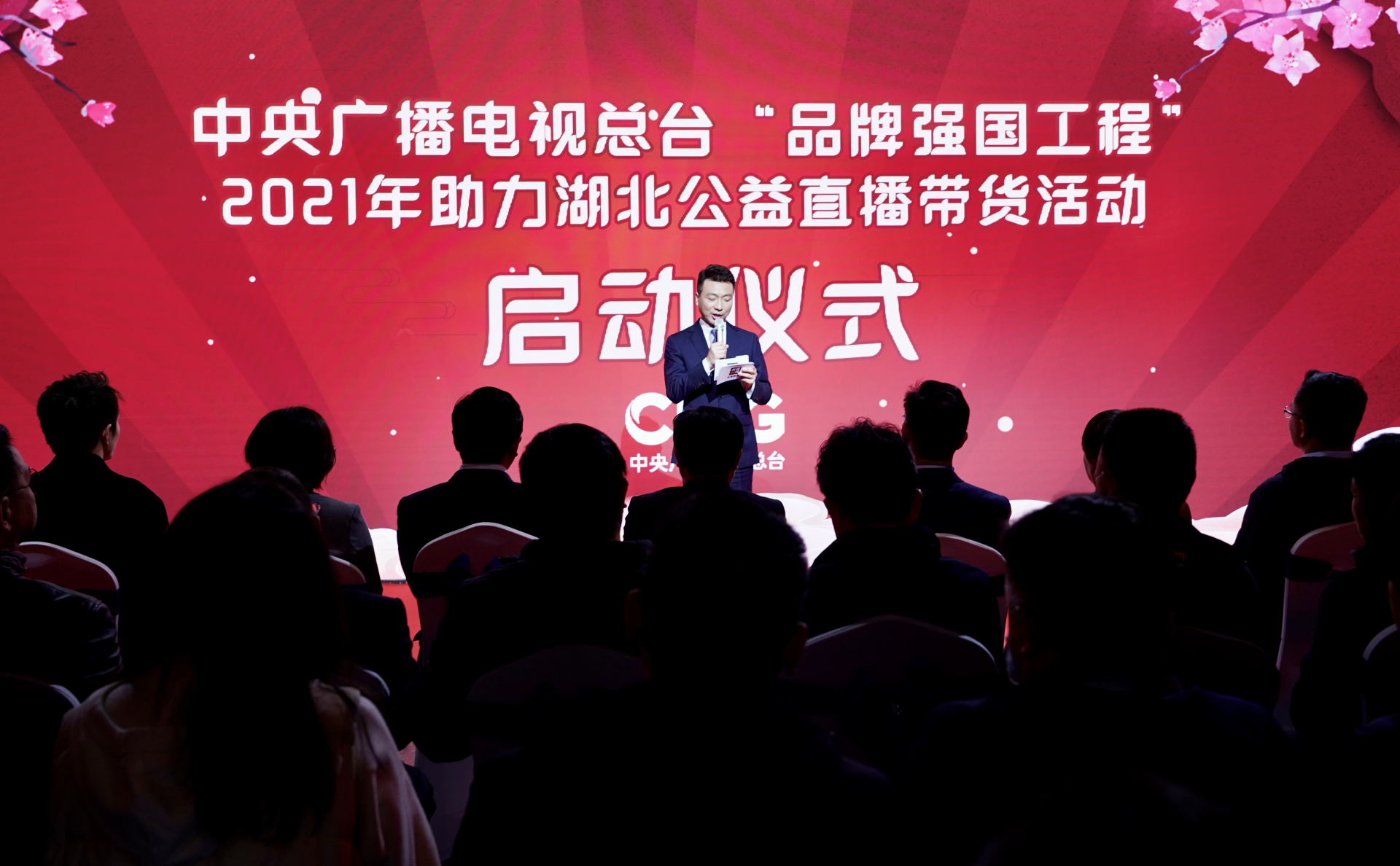 今年1月8日,中央廣播電視總臺(tái)“品牌強(qiáng)國工程”2021年助力湖北專項(xiàng)公益行動(dòng)在北京、武漢兩地實(shí)時(shí)連線。中宣部副部長、中央廣播電視總臺(tái)臺(tái)長慎海雄和湖北省委書記、省人大常委會(huì)主任應(yīng)勇共同啟動(dòng)專項(xiàng)公益行動(dòng)?偱_(tái)在啟動(dòng)儀式中宣布,2021 年將繼續(xù)免費(fèi)提供 5 億元廣告資源,助力湖北經(jīng)濟(jì)恢復(fù),提振全國消費(fèi)者對(duì)“湖北制造”的信心,并為“湖北制造”舉辦 5 場直播帶貨活動(dòng),進(jìn)一步推介湖北特色產(chǎn)品、拉動(dòng)銷售。