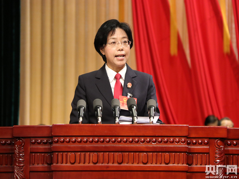 圖為李靜向大會作湖北省高級人民法院工作報告(攝影:張卓)
