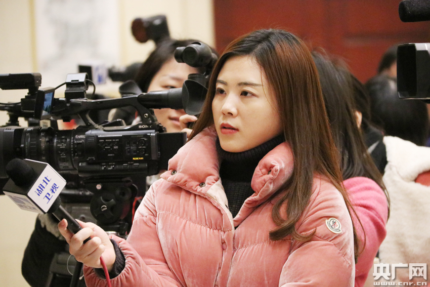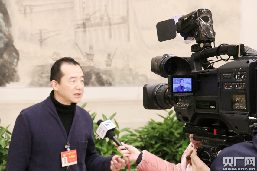 •   圖為記者正在采訪政協(xié)委員。(記者熊峰 攝)