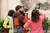 •   圖為記者在做視頻直播。(記者黃炎秋 攝)