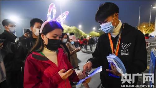 為保障入場通道順暢,武漢經(jīng)開區(qū)防疫工作組反復(fù)勘探現(xiàn)場,在進(jìn)場區(qū)域最前沿設(shè)置12臺自動測溫儀!皽y溫攝像頭覆蓋直徑3米范圍,1分鐘內(nèi)可檢測500人體溫,并有自動報警系統(tǒng),如遇體溫超37.3°C即有提示!爆F(xiàn)場防疫工作人員介紹道,在現(xiàn)場入口處,為防止因人群集中掃碼造成聚集擁堵,進(jìn)場區(qū)域的道路圍擋上均張貼有防疫提示及掃碼掛圖,沿途志愿者佩戴健康胸牌供觀眾掃碼。