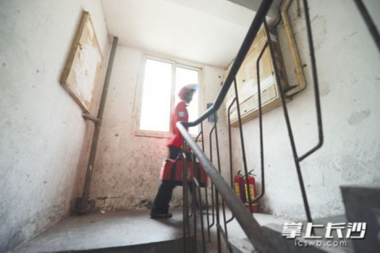 遇到?jīng)]有電梯的老式樓房,王春芳往往都是兩層階梯做一步跨上去,她笑著跟記者說,這樣可以節(jié)省不少時(shí)間