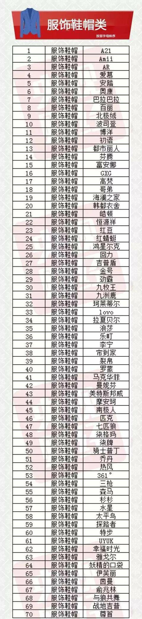 服飾鞋帽類品牌榜 央視財(cái)經(jīng) 供圖