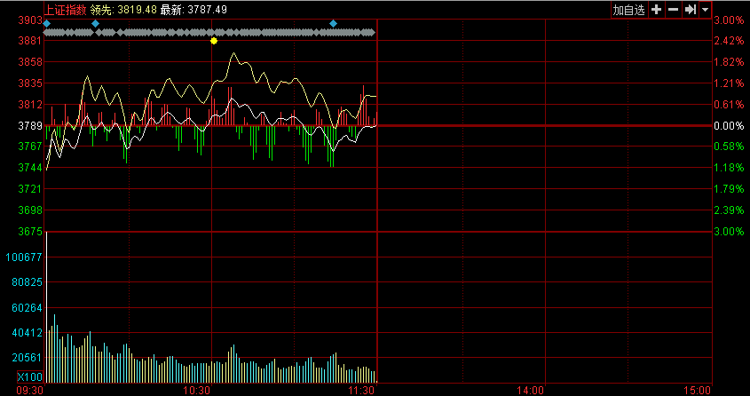 滬指寬幅震蕩 多空爭奪3800點整數(shù)關(guān)口