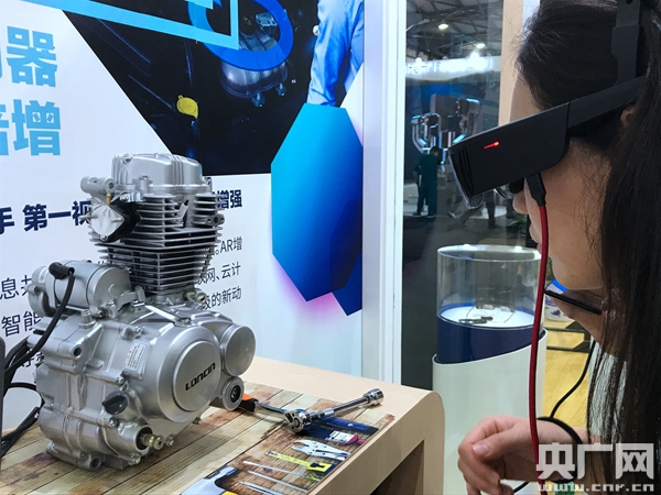 在亮風臺公司的展臺前,一個摩托車發(fā)動機格外引人注目。現(xiàn)場工作人員任崇斌介紹,維修人員工作時戴上亮風臺AR眼鏡,摩托車發(fā)動機的產(chǎn)品信息、零部件結(jié)構(gòu)就能清晰地疊加在現(xiàn)實場景之上!拔覀兛梢栽诂F(xiàn)實中疊加顯示它的內(nèi)部結(jié)構(gòu)和工作原理,可以選擇各個模塊讓它告訴我們每個零部件的名字。如果在維修的過程中遇到了問題,可以申請遠程協(xié)助。這些全都是戴著眼鏡在操作,可以達到解放雙手的目的!