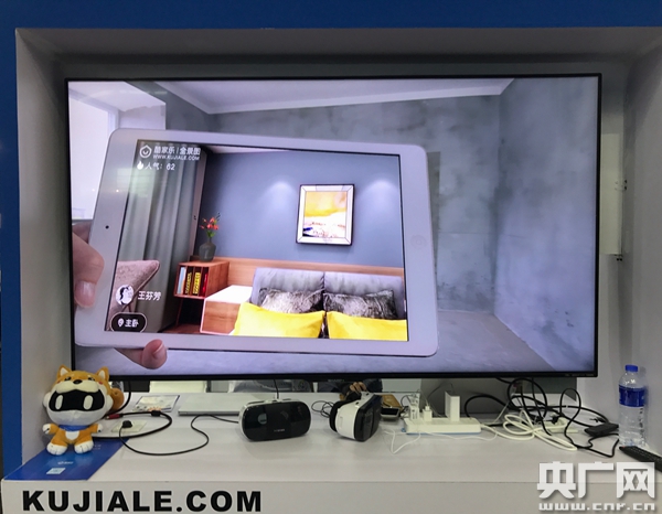 記者戴上這個VR眼鏡后,設(shè)計方案中的條紋壁紙、木地板、北歐風家具仿佛就在眼前,像是走進了剛裝修好的房間?峒覙菲放坪献鲗T錢天穎說:“這是一個VR的設(shè)計方案,你可以進入每個房間里感受,我們可以把所有在酷家樂平臺上面的方案一鍵切換到VR設(shè)備,直接配合這個眼鏡就可以有浸入式的感受!