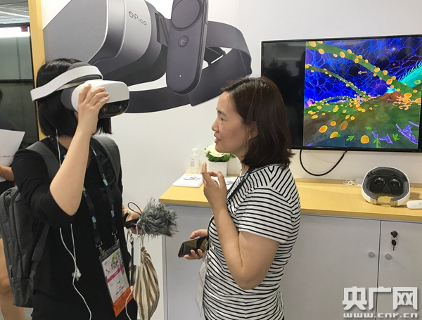 另外,在教育領(lǐng)域,VR設(shè)備也開始投入應(yīng)用。在北京小鳥看看科技有限公司的展區(qū),記者體驗了一款頭戴式VR一體機,這款設(shè)備可以結(jié)合生物學教學方案,呈現(xiàn)細菌的形態(tài)并講解相關(guān)知識。小鳥看看科技有限公司副總裁祖昆侖介紹,VR設(shè)備提升了教學手段的豐富性和趣味性。傳統(tǒng)的教學可能只能展示圖片,但在VR設(shè)備里,學生可以非常直觀地看到細菌的形狀,在看到細菌同時,它還會告訴學生該細菌的作用。祖昆侖說,除了生物方面的VR產(chǎn)品,他們還做過帶有化學、地理、英語等學科內(nèi)容的VR產(chǎn)品。