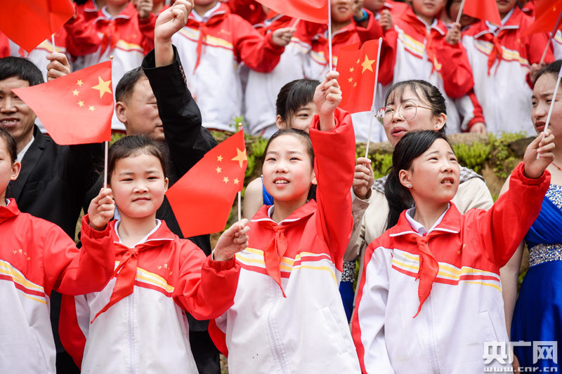 學生們揮動小紅旗(央廣網發(fā) 通訊員方華彬/攝)
