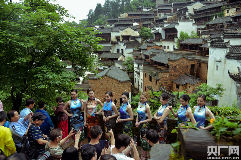 一場(chǎng)快閃以流動(dòng)的旋律、瀟灑的畫意,展現(xiàn)女子典雅賢淑的氣質(zhì)和篁嶺靚麗綽約的風(fēng)采,讓風(fēng)光旗袍與秀美鄉(xiāng)村完美融合。這場(chǎng)“旗袍秀”也展示著中國(guó)傳統(tǒng)服飾與這古老徽州村落文化巧妙融合的無限魅力。