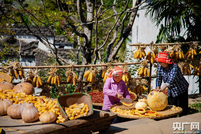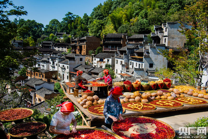 又是一年豐收季,碩果滿枝、風(fēng)吹稻浪,此時的篁嶺也是家家戶戶曬秋忙。獨具特色的曬秋景觀在篁嶺青瓦白墻的襯托下,愈發(fā)顯得五彩斑斕,呈現(xiàn)出一幅立體的曬秋農(nóng)俗畫卷,演繹著大地豐收的樂章。