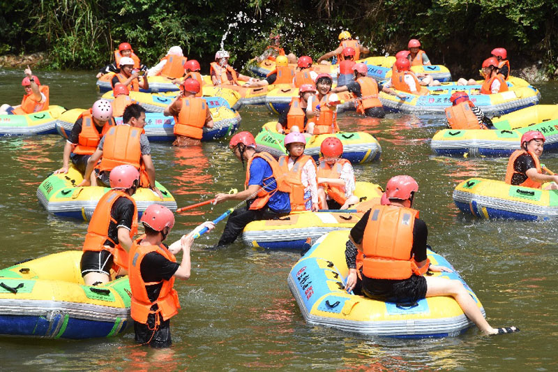 近日,江西多地持續(xù)高溫,位于婺源縣的五龍源極限漂流景區(qū)迎來旅游高峰,眾多游客前來體驗親水漂流項目,樂享夏日清涼。(通訊員 詹衛(wèi)華)